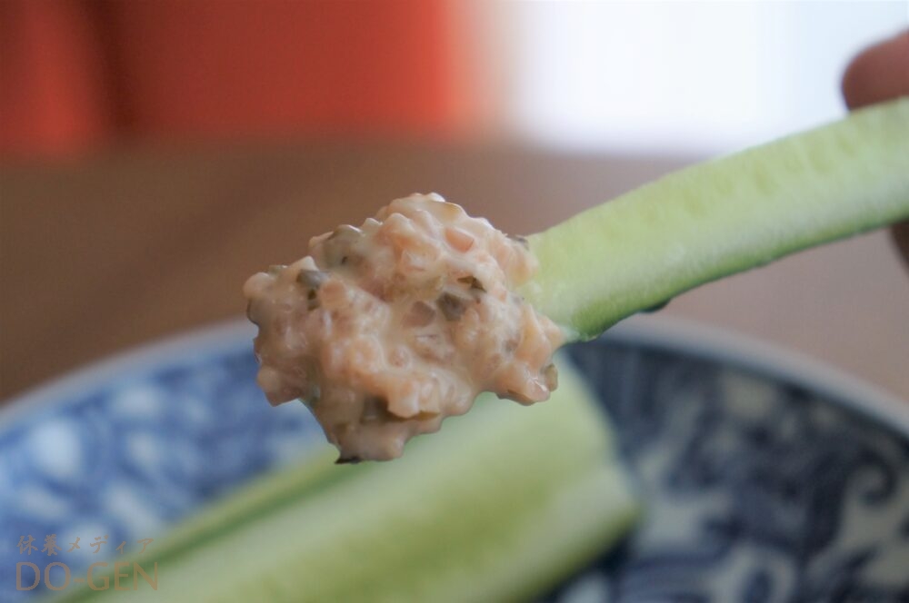 まずは定番のスティック野菜でまずは、この時期に欠かせない野菜のひとつ、きゅうりと一緒に食べてみました。
