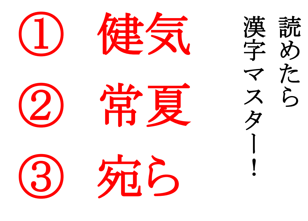 「健気」と書いて、(けんけ)でも(けんき)でもありません。
