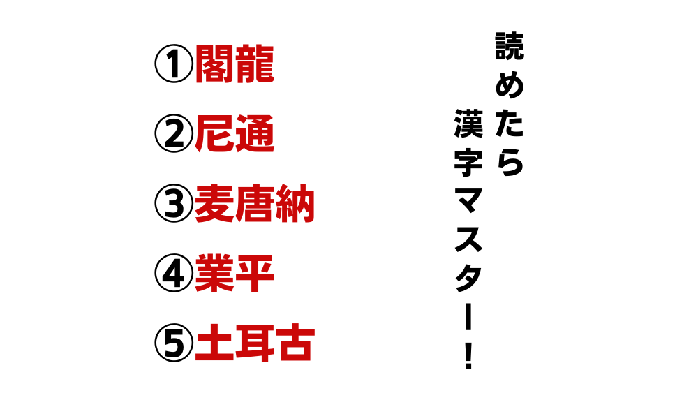 今日の難読漢字5つ、あなたはいくつ読めましたか?