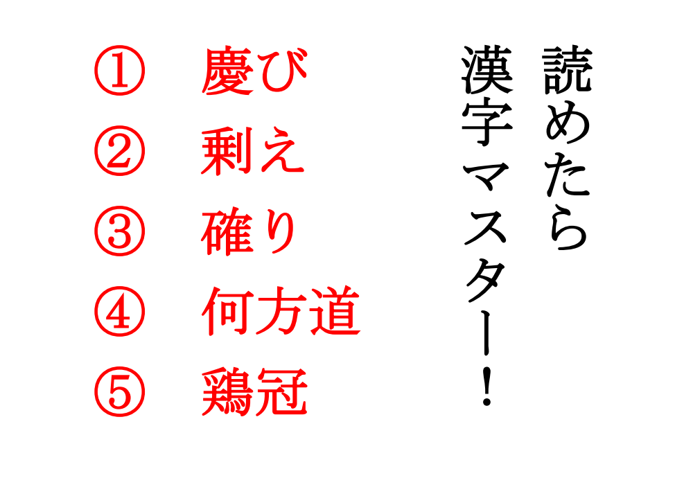 どれもなんとなく読めそうな漢字ばかりですが、 なんと読むか分かりますか?