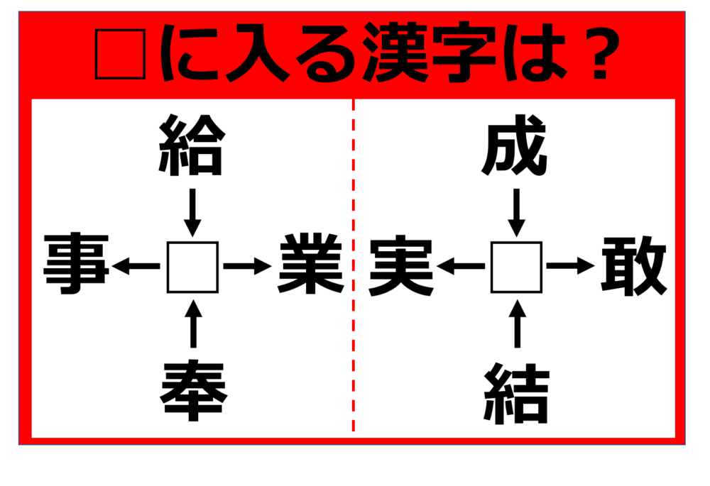 □に入る漢字が何か、頭の体操をしてみましょう。